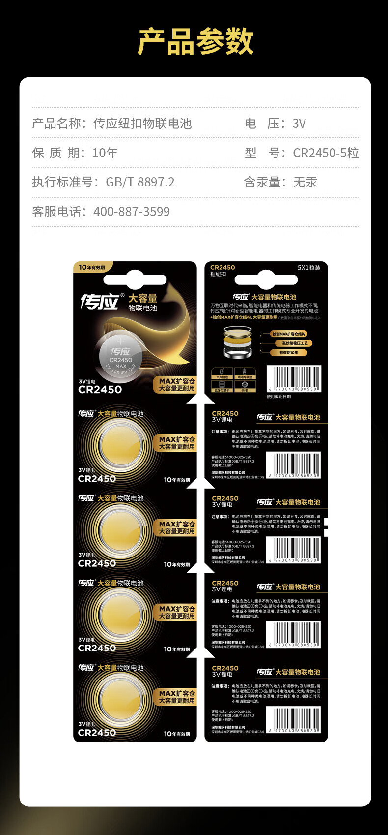 南孚 纽扣电池,CR2450 3V锂电池 适用宝马沃尔沃等汽车钥匙 5粒/卡 单位:卡