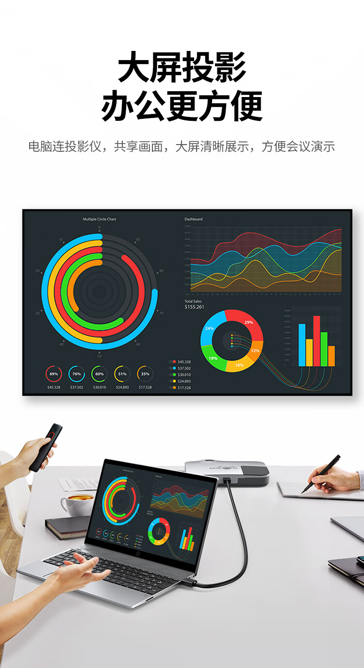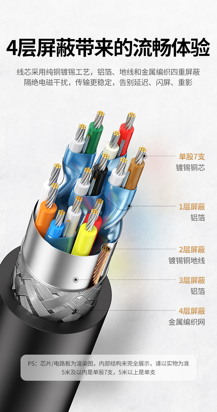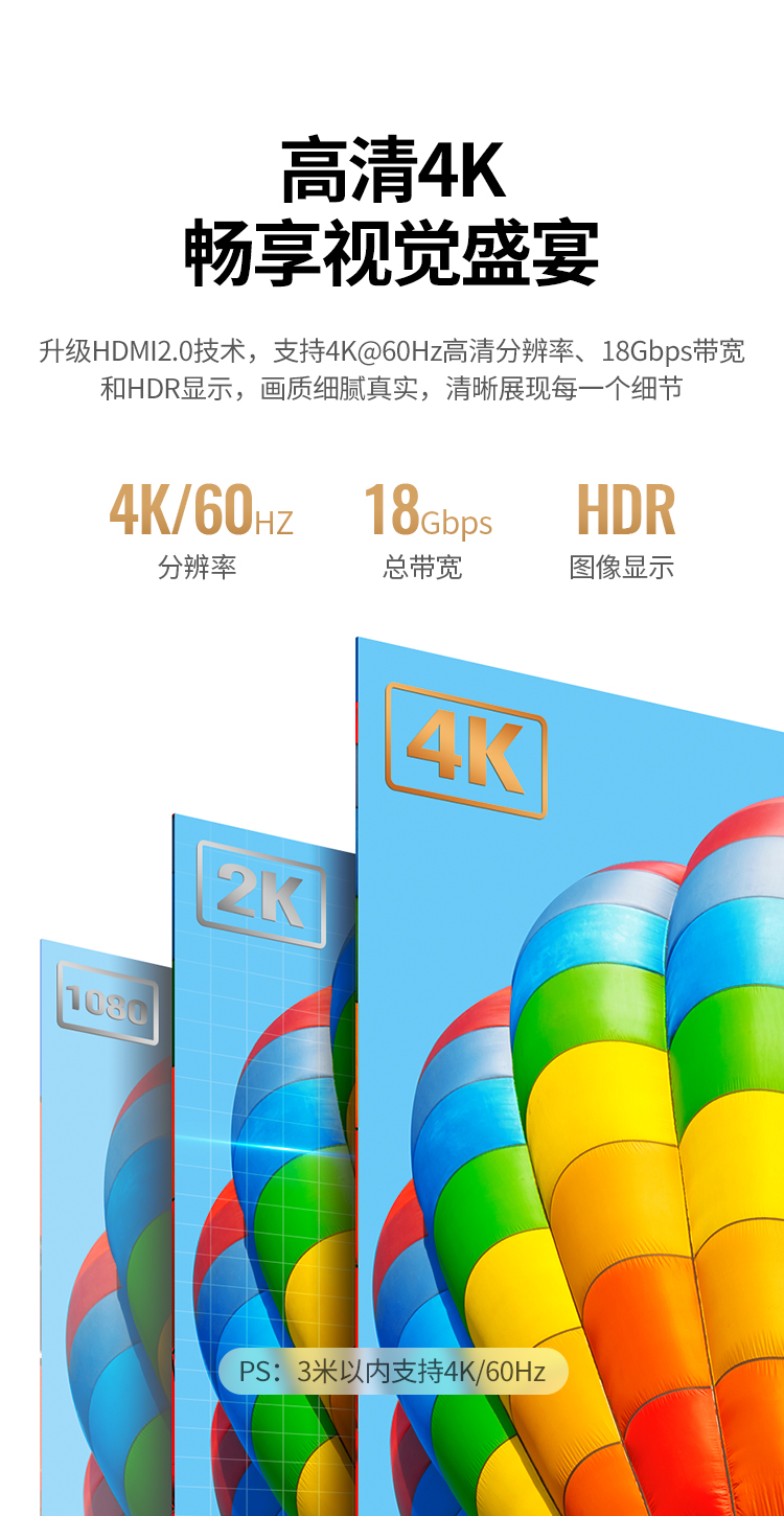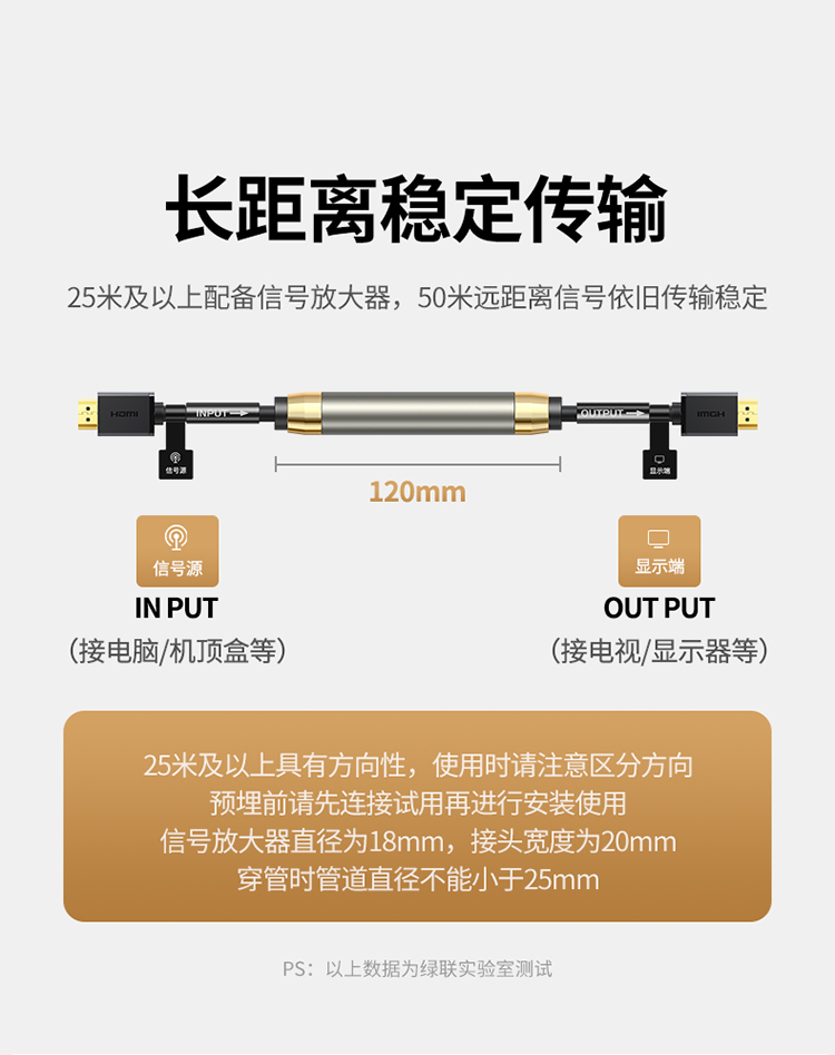 绿联 HDMI黑色线, 1.4版本电脑连接线 24AWG OD10.0MM 支持1080P,60HZ 20米 HD104 10112