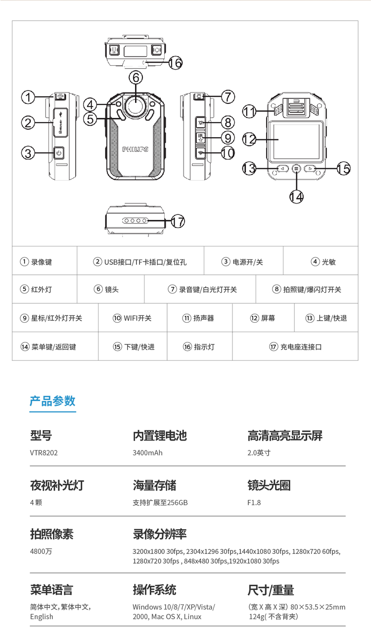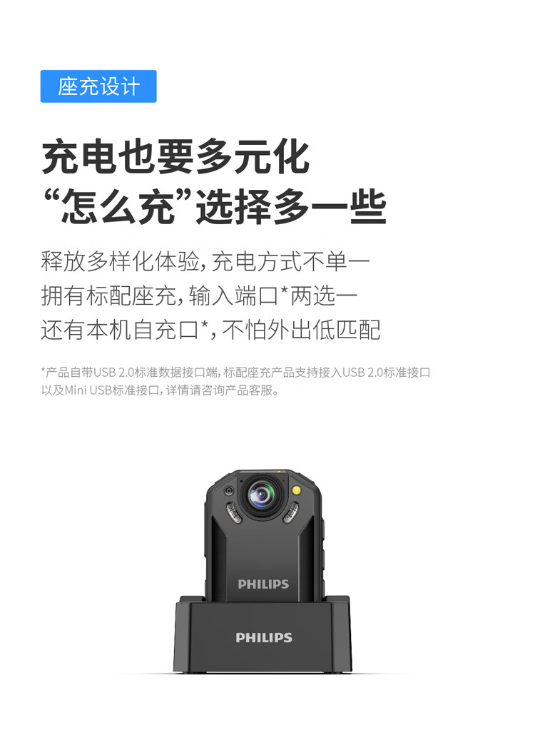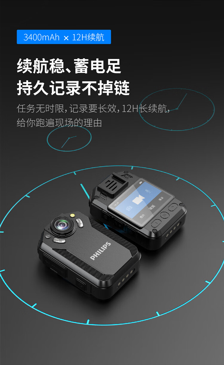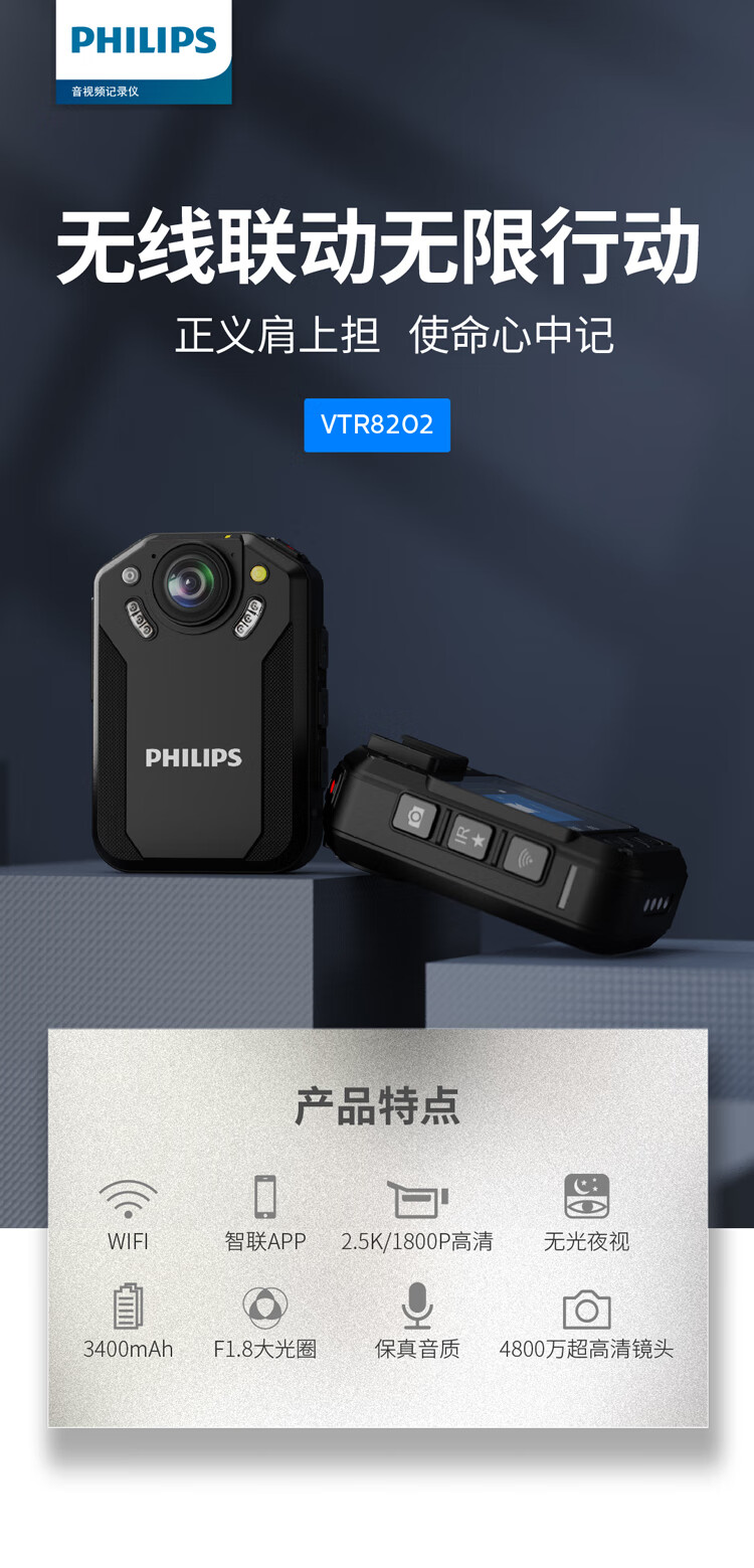 飞利浦 执法记录仪,VTR8202(256G) 2.5K高清红外夜视微型迷你摄影机
