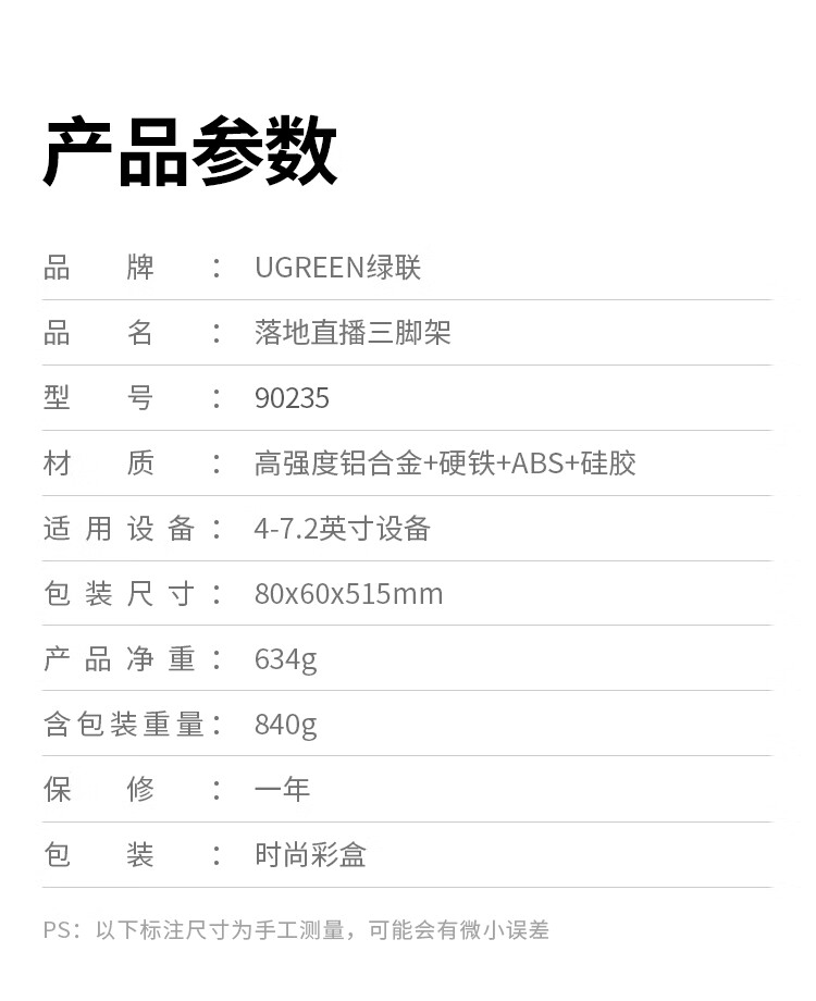绿联 落地直播三角架,LP377(90235)