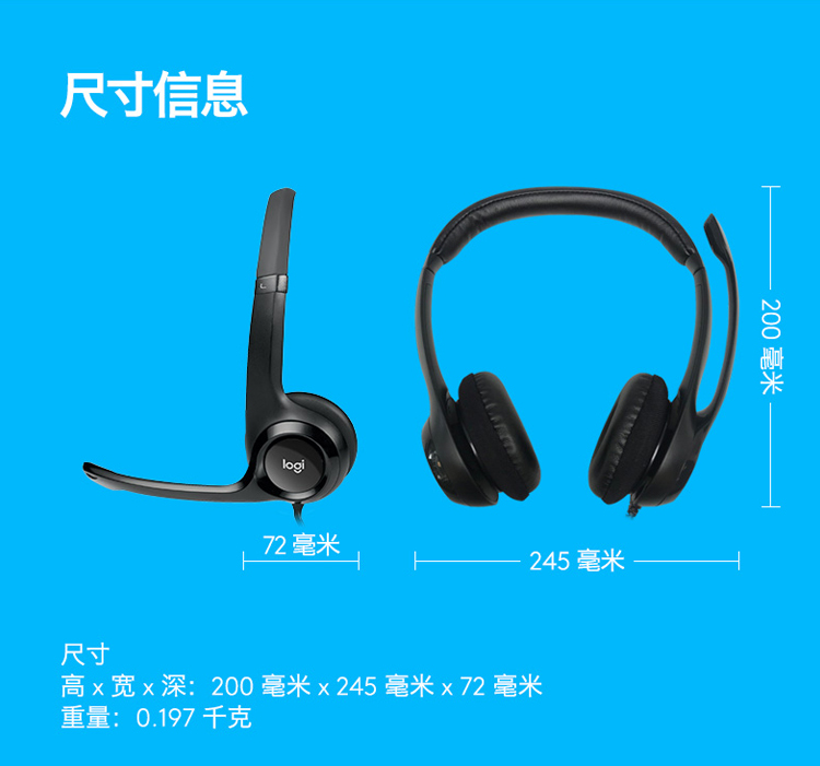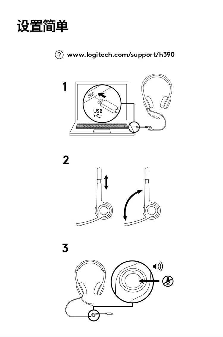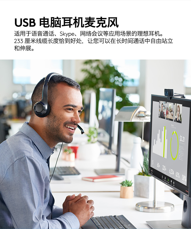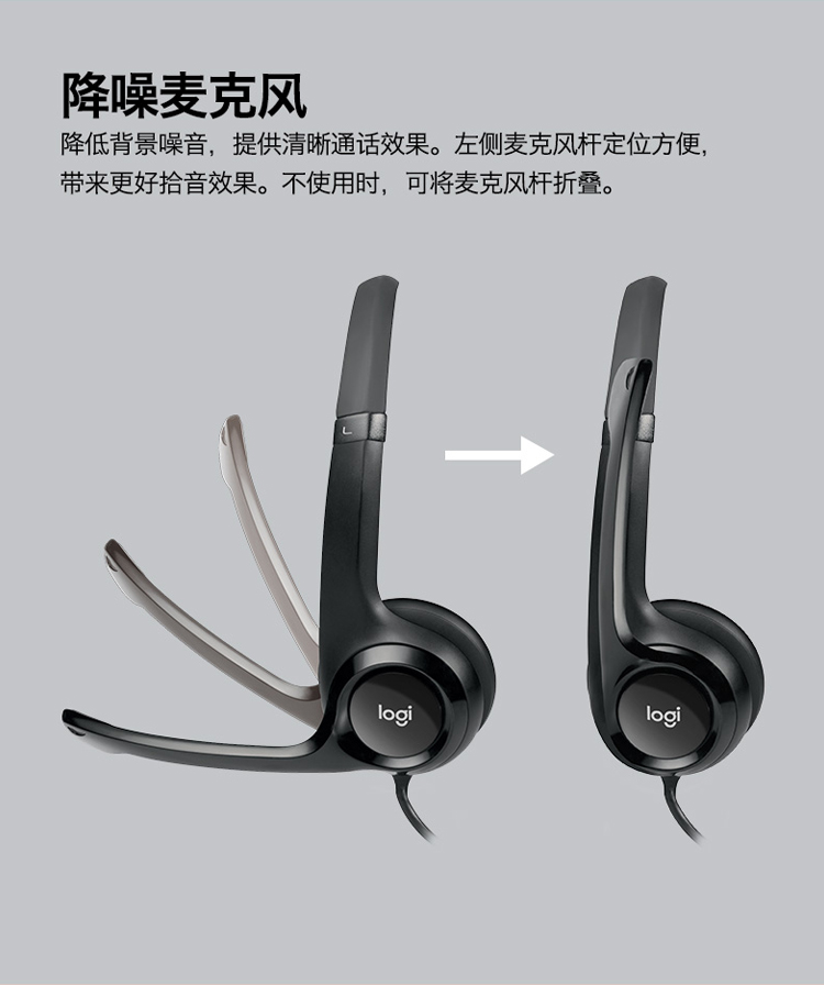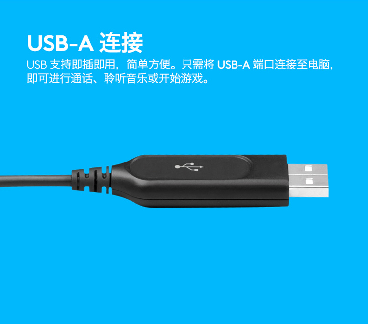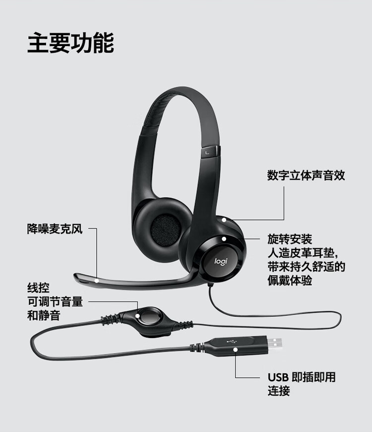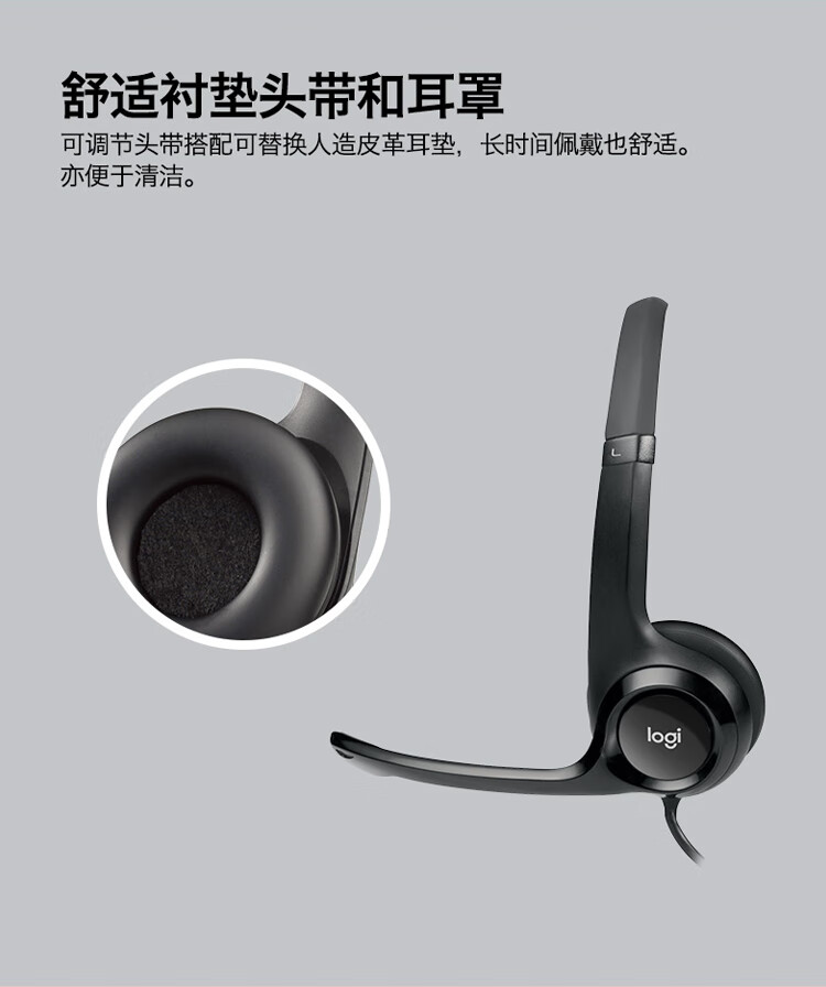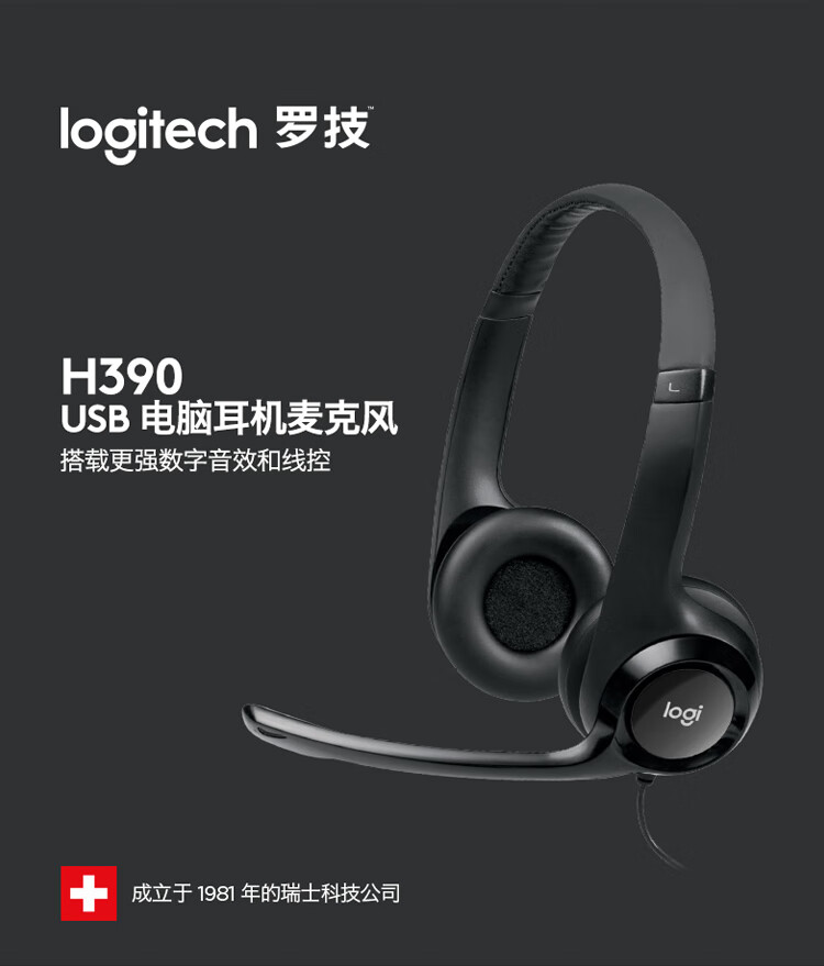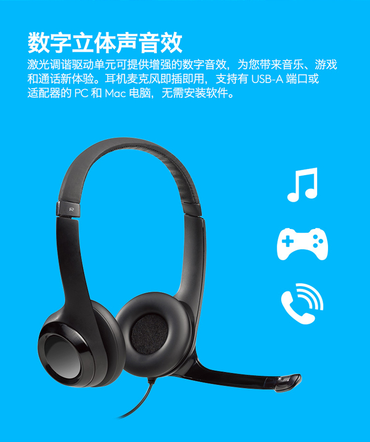 罗技 头戴式立体声耳机耳麦,H390 USB接口