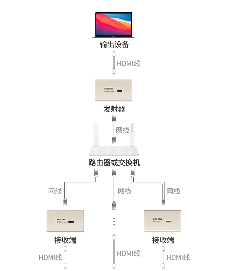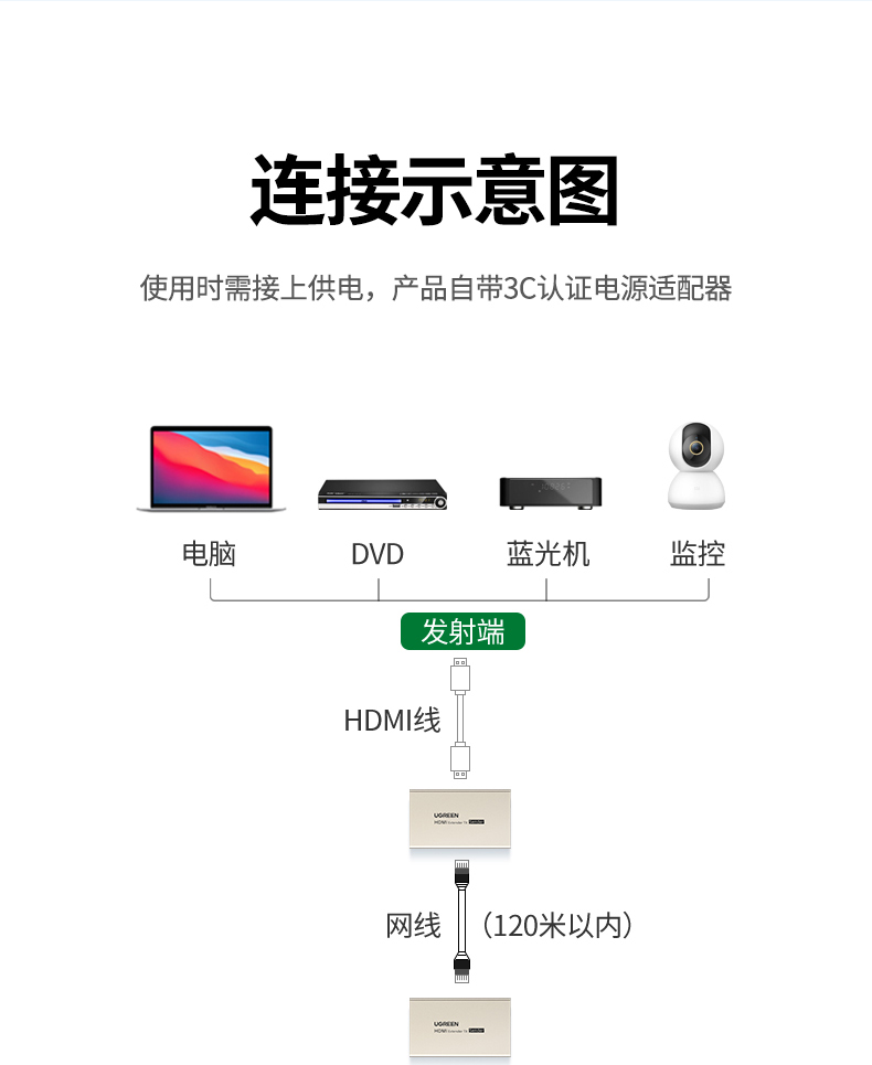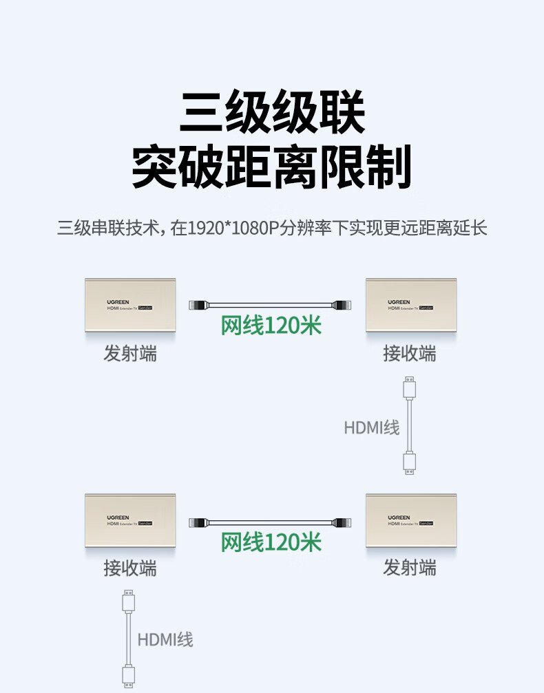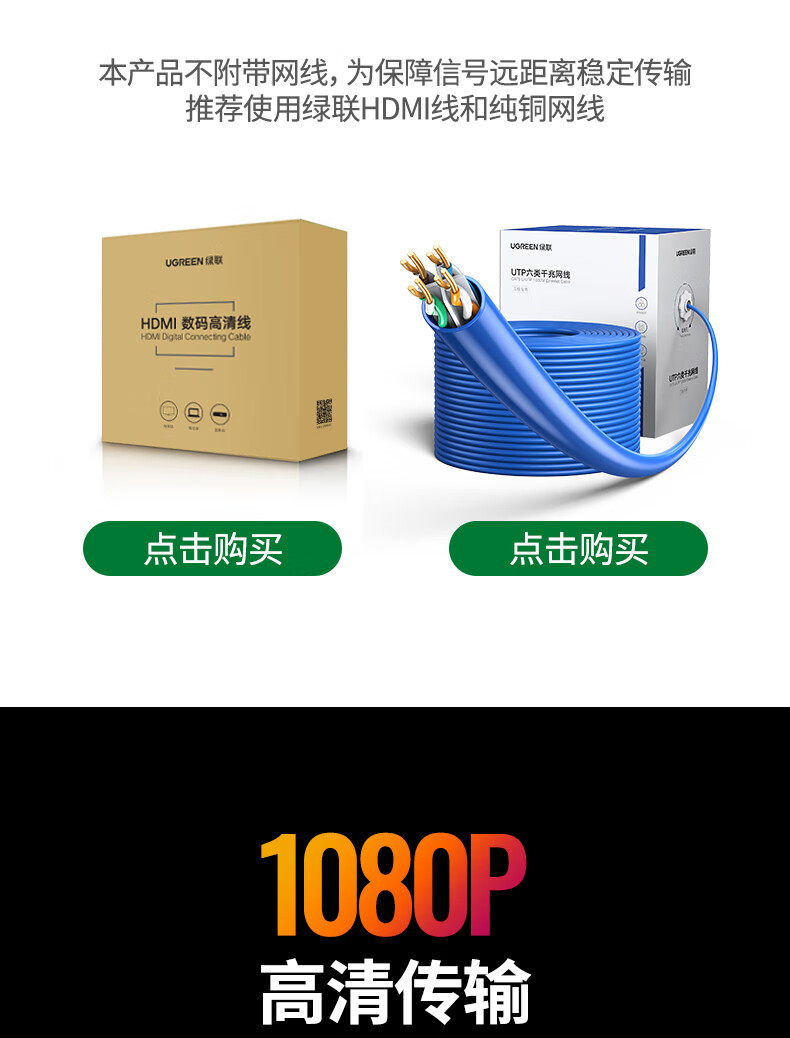 绿联HDMI延长器,40283 120米hdmi转RJ45网口转换器 单网线高清网络传输信号放大连接器接收端