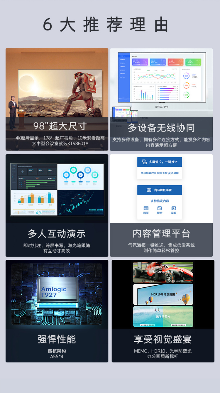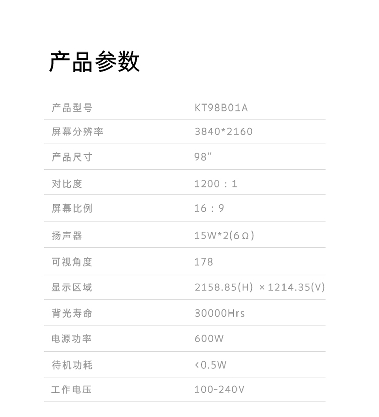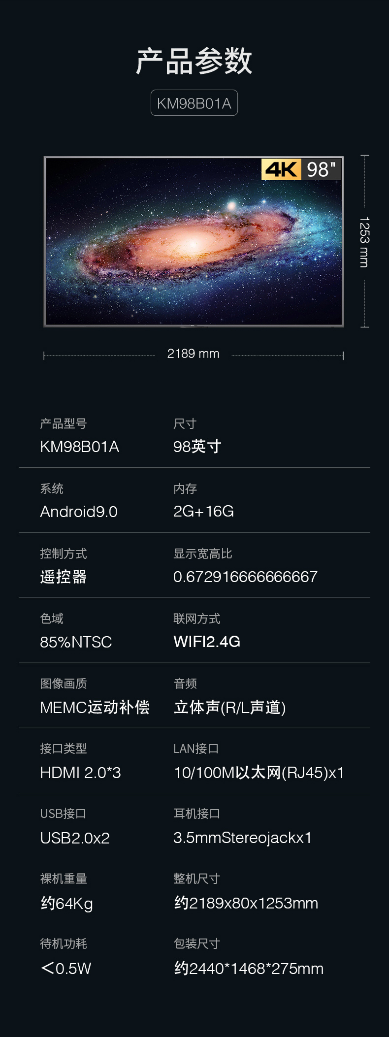 创维 电视机,KT98B01A 98英寸商用会议平板巨幕 4K超高清HDR支持投影投屏(含挂架安装)