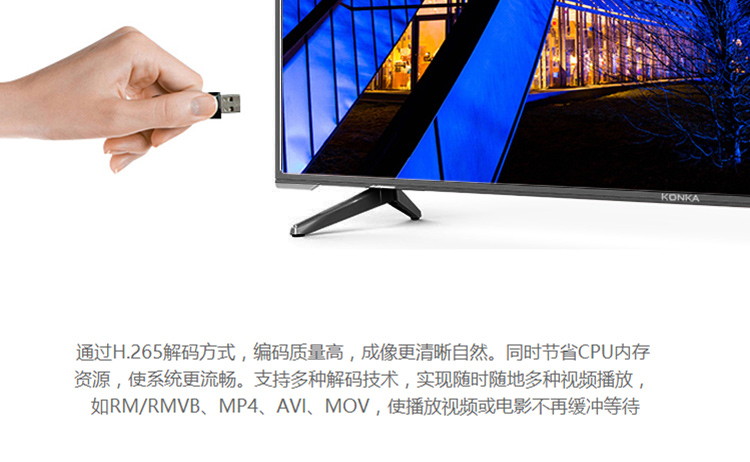康佳 液晶电视,65英寸 4K全面屏 黑色 LED65G300E 含标准挂架安装