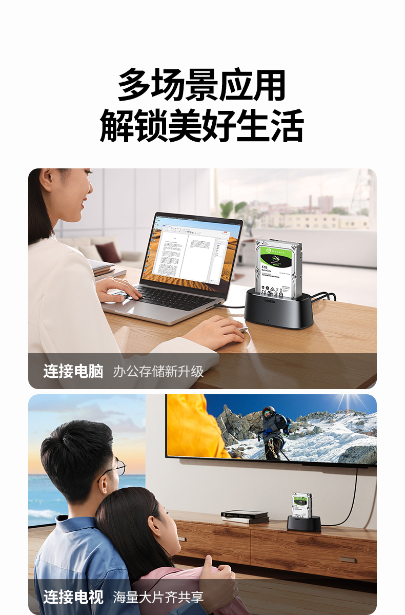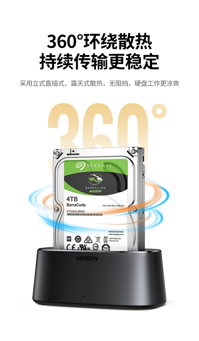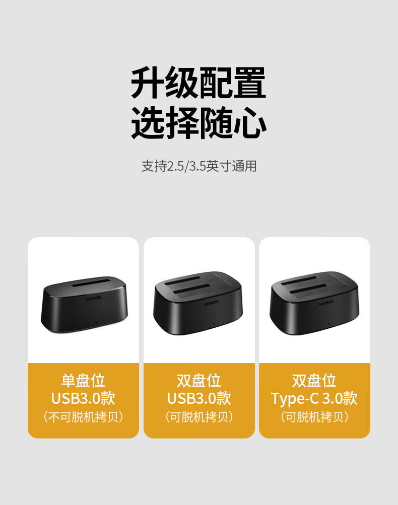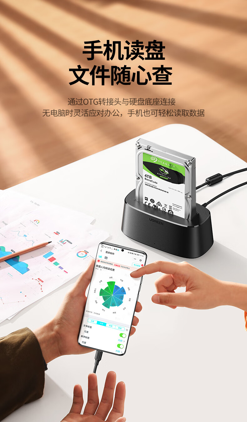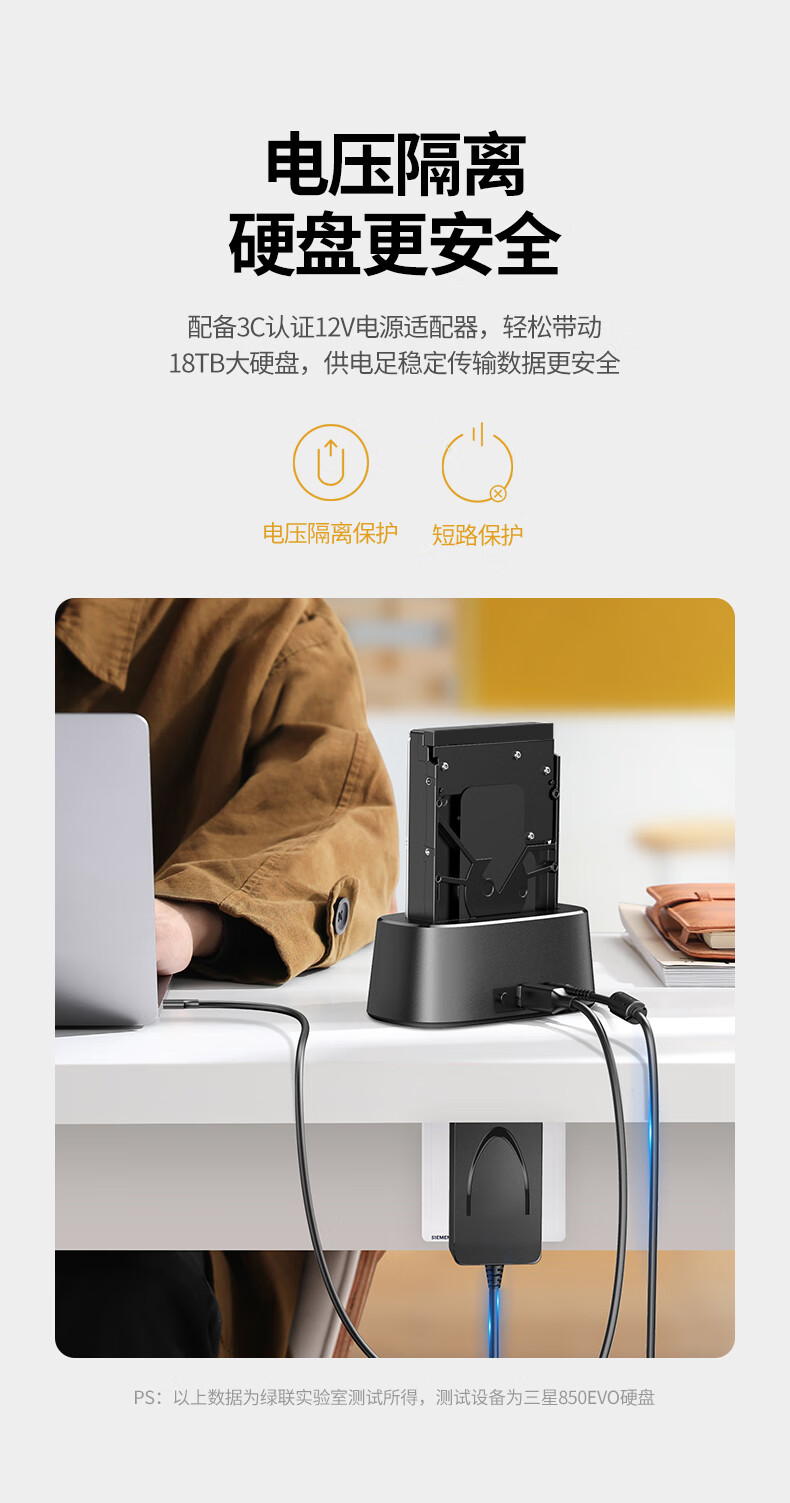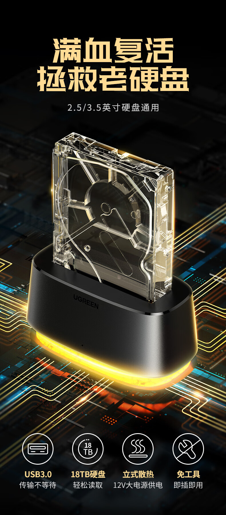 绿联 UGREEN 移动硬盘盒底座,50740 USB3.0台式机笔记本电脑外接SATA串口机械固态ssd硬盘盒子