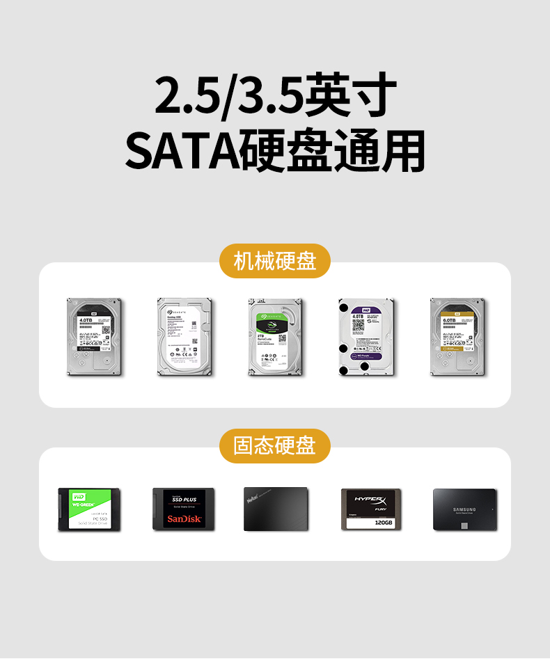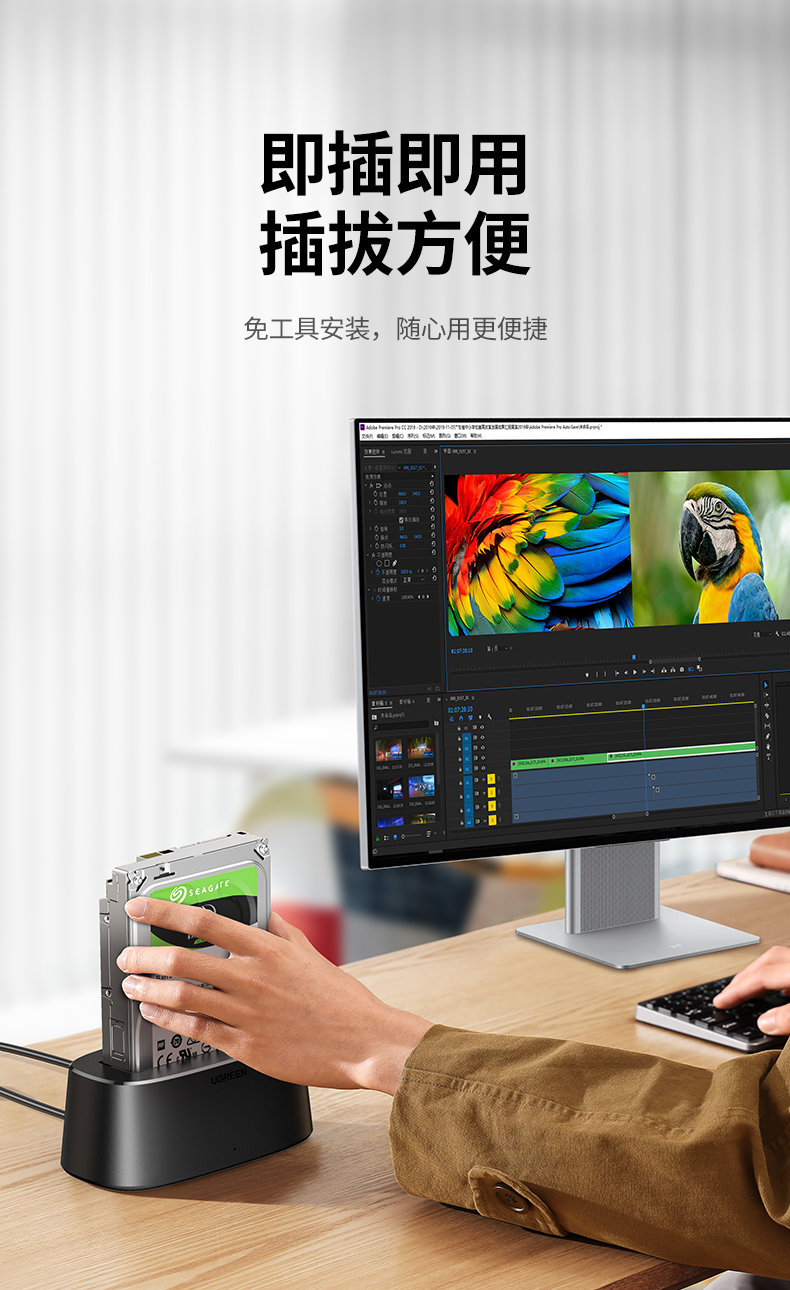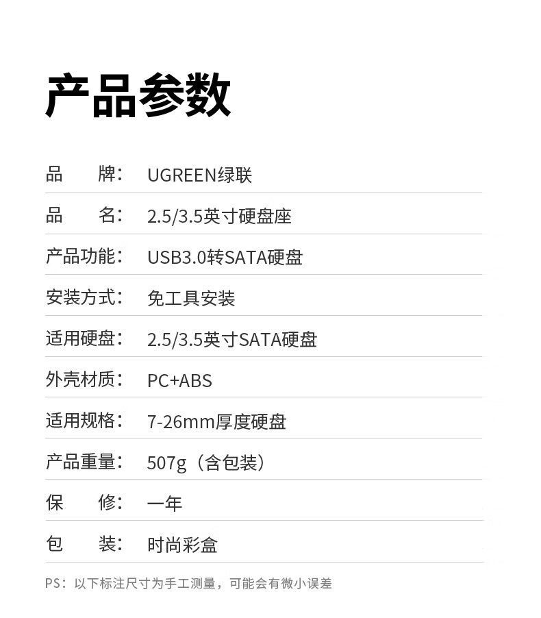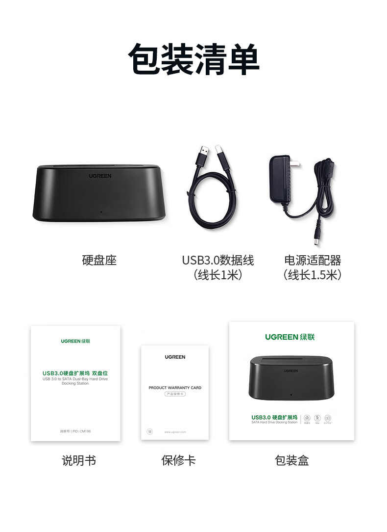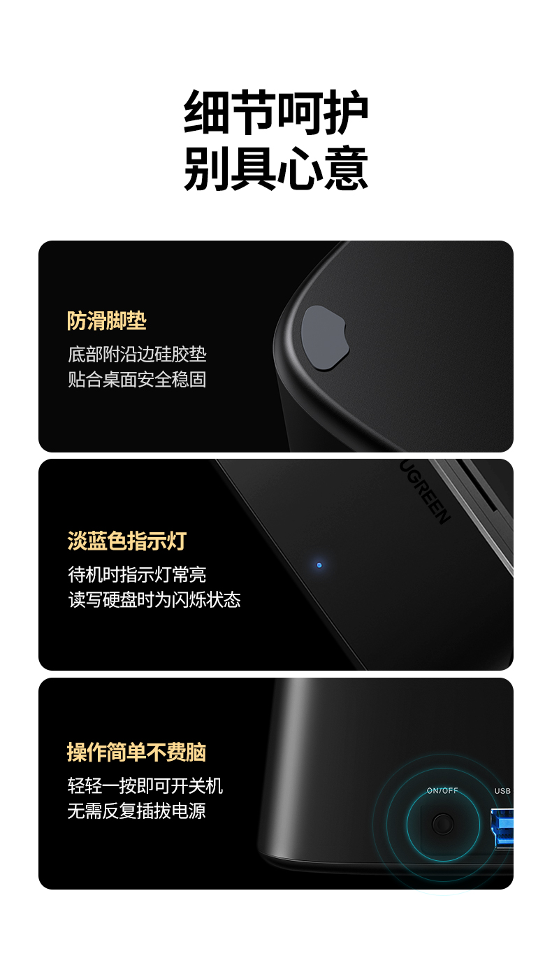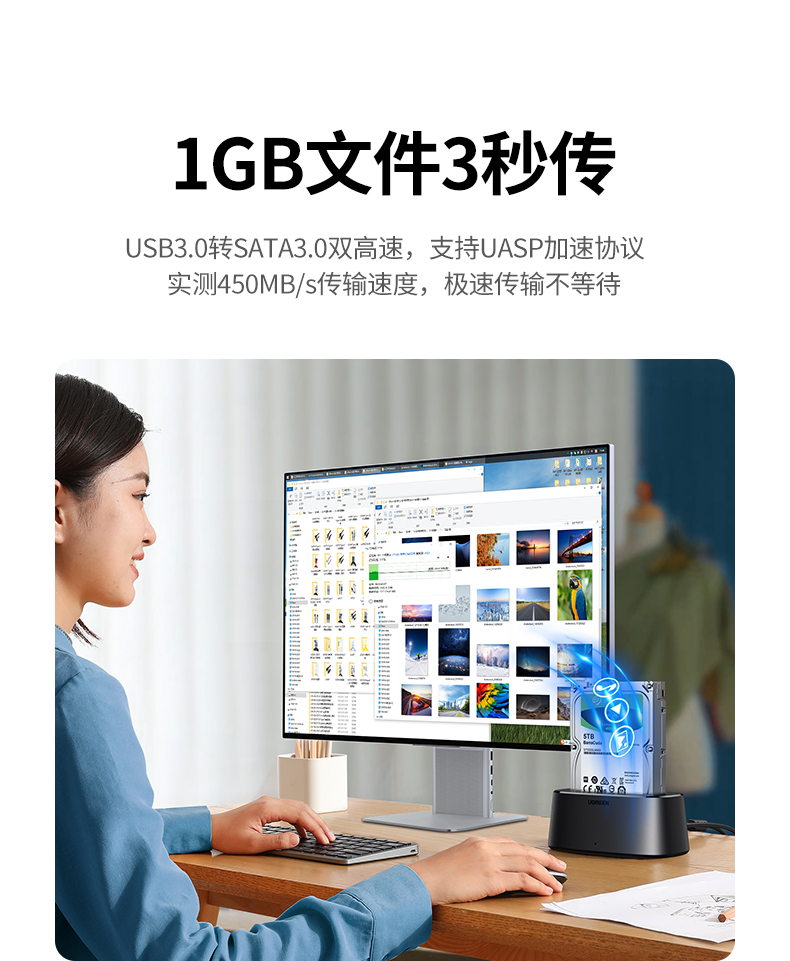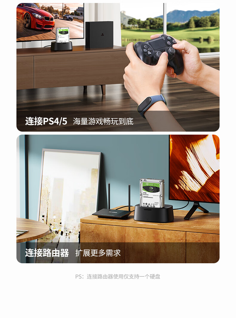 绿联 UGREEN 移动硬盘盒底座,50740 USB3.0台式机笔记本电脑外接SATA串口机械固态ssd硬盘盒子
