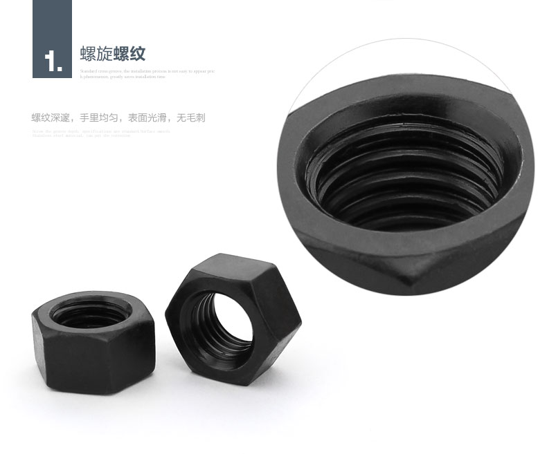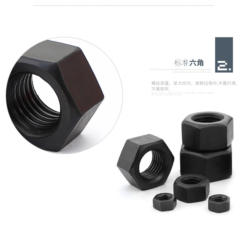 六角加厚螺母又名六角厚螺母、厚螺母等,六角加厚螺母同属于六角螺母,主要区别在于螺母高度不同,主要目的在于,通过螺母高度的增加,在较低的淬火回火硬度下就可以达到保证应力指标,故增加了螺母的韧度,碳钢8级螺母往往与8.8级、10.9级、12.9级螺栓配合使用。
