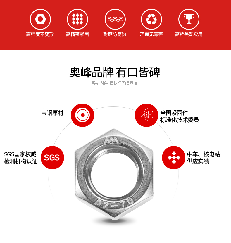 奥峰 GB6170厚螺母,M42-4.5,不锈钢316/本色