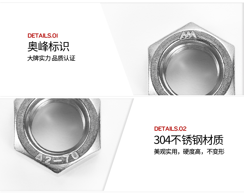 4)保持螺纹清洁,为确保螺丝和螺帽配合顺畅,建议把产品装在干净的容器内取用,勿随意放置。
