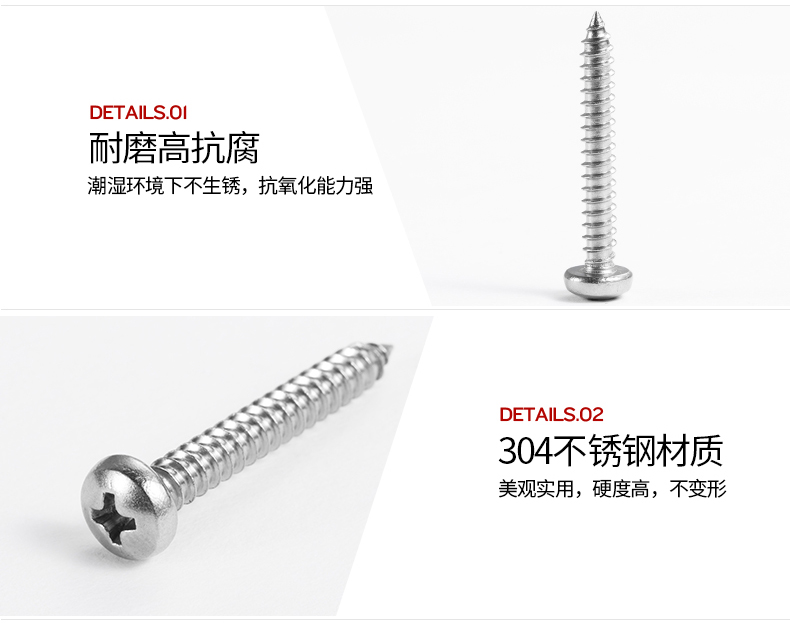 不锈钢十字槽盘头自攻钉,俗称304圆头自攻钉、304半圆头自攻钉,最常用的材质为奥氏体不锈钢A2,其含义为奥氏体不锈钢组别为A2,奥氏体不锈钢A2具有以下特质: