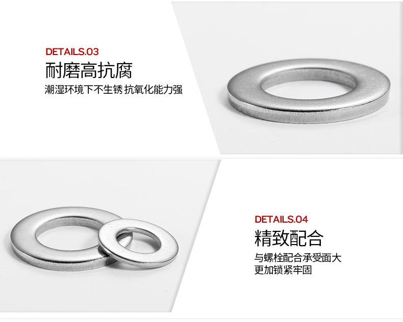 面,其采用垫圈。平垫圈采用不锈钢A2材质,此材质具有以下特性: