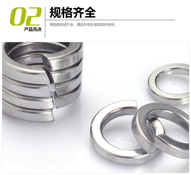 弹簧垫圈在螺丝行业常叫为弹垫,弹簧垫圈在一般机械产品的承力和非承力结构中应用广泛,其特点是成本低廉、安装方便,适用于装拆频繁的部位。弹簧垫片具有防松功能,在有震动、脉冲、介质的温度有比较大的波动时,弹簧垫可加大预紧力 ,有效防止螺栓及螺母松动。