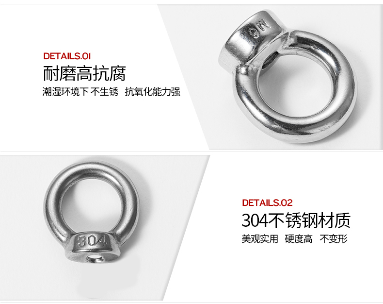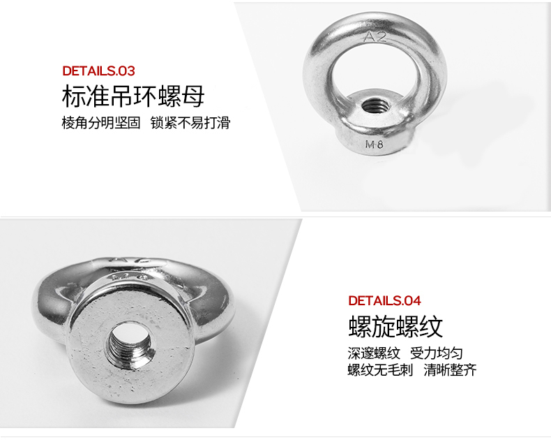 吊环螺母是指螺帽与螺栓或螺杆拧在一起用来起紧固作用的零件,几乎所有生产制造机械必须用的一种固定用挂件,螺母下方带有丝扣,可根据其不同规格,钻孔,利用螺口固定,其常与外螺纹柱配合使用,起吊各种设备,如模具、机箱、电机等,在配合使用时,务必注意同等规格吊环螺母和螺丝,才能连接在一起。
