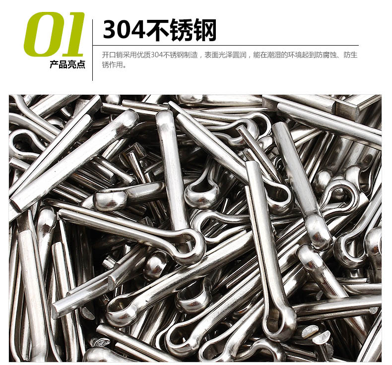开口销又叫弹簧销是一种机械连接件,用于螺纹连接防松,螺母拧紧后,把开口销插入螺母槽与螺栓尾部孔内,并将开口销尾部扳开,防止螺母与螺栓的相对转动,往往选用弹性较好的钢材,不锈钢开口销往往采用奥氏体不锈钢A2材质,奥氏体不锈钢A2具有以下特质: