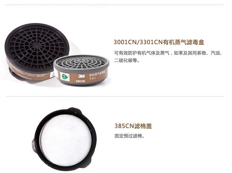 与3M3200面具、新款385CN滤棉盖、3301CN滤毒盒一同使用,有效过滤各类喷漆作业中产生的漆雾