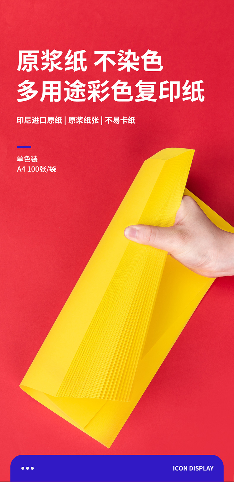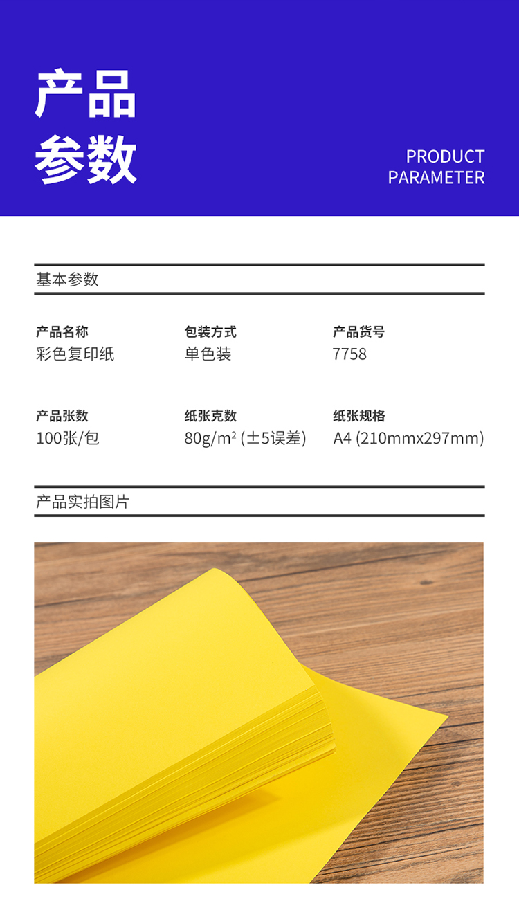 得力 彩色复印纸,7758 A4 80g彩色打印纸手工折纸 深黄 100张/包 25包/箱 单位:包
