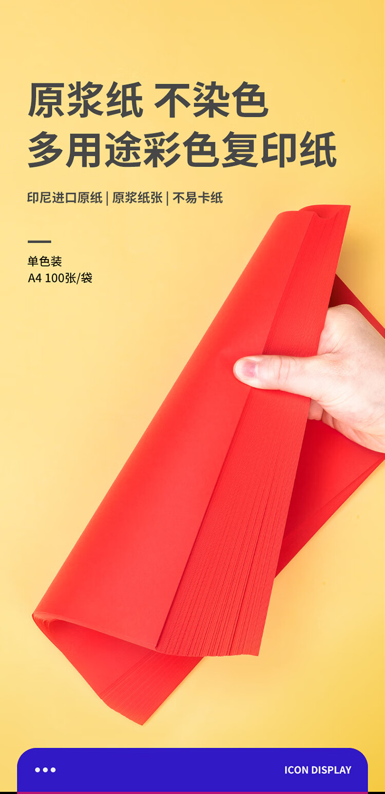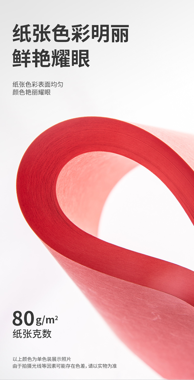 得力 彩色复印纸,7758 A4 80G彩色打印纸手工折纸 红色 100张/包 25包/箱 单位:包