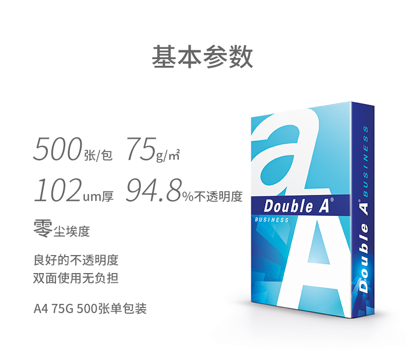 Double A 高档复印纸纸,90g-A4 500张/包 5包/箱 单位:箱